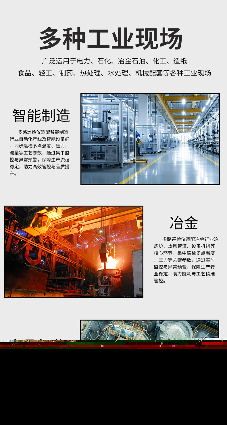 虹潤公司是專業生產多路溫度巡檢儀的國家專精特新“小巨人”企業,生產的多回路測量顯示控制儀,具有8路/16路測量通道,全切換信號輸入,多種輸出類型,高抗干擾,RS485/RS232通訊等特點。產品獲得巡回檢測顯示方法及裝置、儀表殼體等2項國家發明專利,主持起草工業過程控制系統用模擬輸入兩位或多位輸出儀表、物聯網智能溫度儀表通用技術條件等2項國家標準,以及通信系統多通道數據采集控制終端規范軍用標準,參與國際5G標準制定,取得多回路測量顯示控制儀等3項相關軟件著作權。產品廣泛應用于電力、石化、冶金、制藥、水處理、機械配套等各種工業現場。