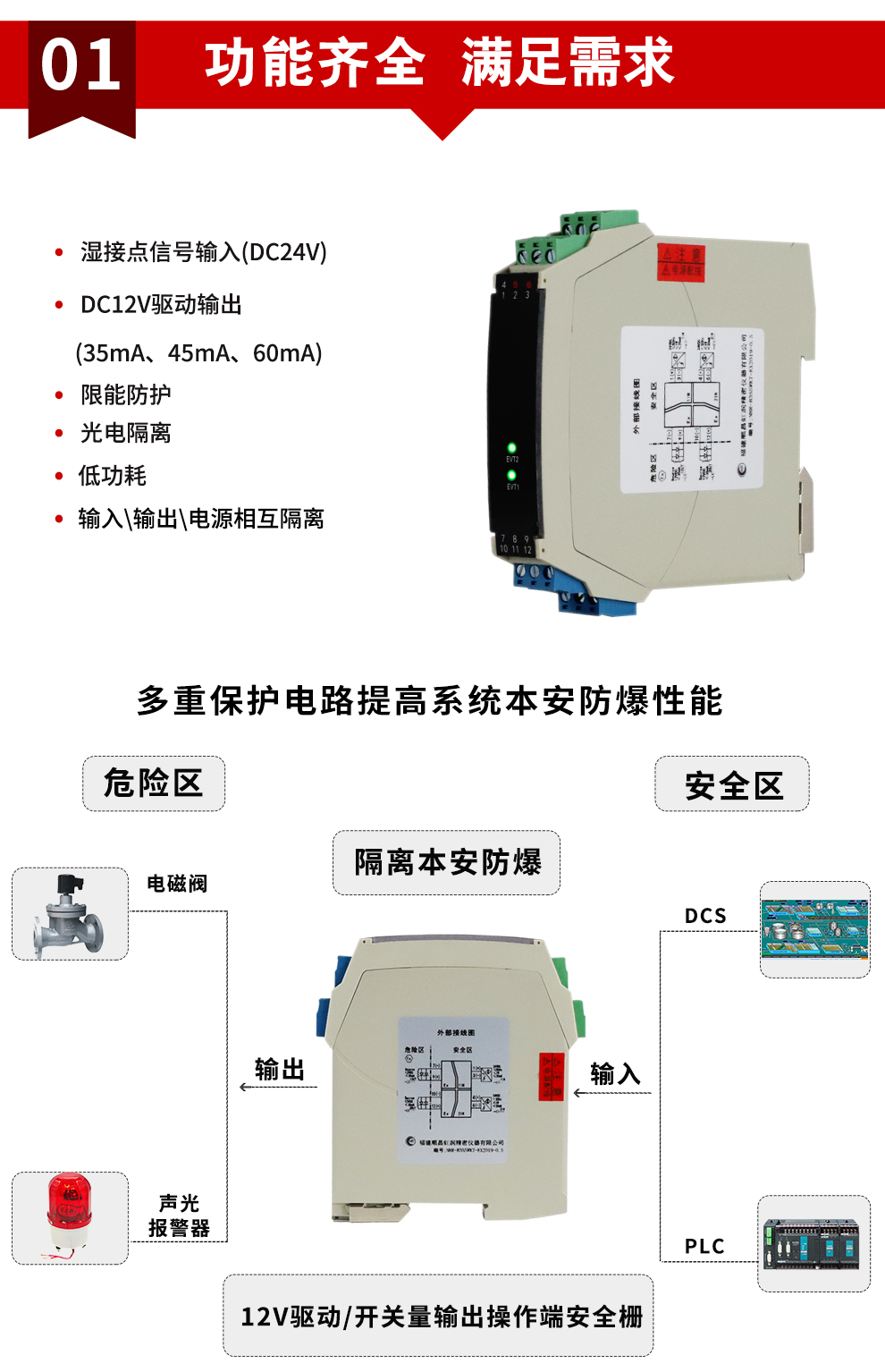 虹潤公司是專業生產隔離器的國家專精特新“小巨人”企業。生產的隔離式操作端安全柵涵蓋信號電壓輸入、電流輸入、開關量輸入等多種產品類型。產品獲得具備減震抗干擾能力的溫度變送器、信號隔離器、一種二端子模塊、無源信號隔離器等4項國家發明專利,主持起草物聯網智能溫度儀表、現場設備工具(FDT)接口規范、工業過程測量和控制系統用溫度變送器等3項國家標準,以及通信系統多通道數據采集控制終端規范軍用標準。參與國際5G標準制定,取得智能隔離式安全柵等4項相關軟件著作權。產品廣泛應用于石油、電力、化工,冶金、智能制造、污水處理等諸多行業。