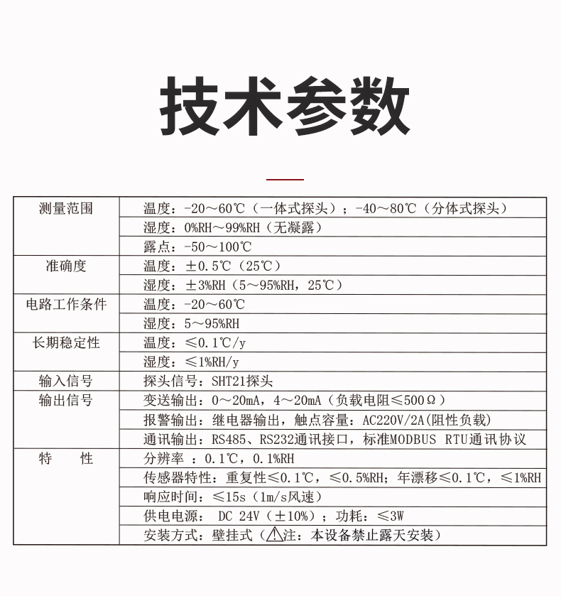 虹潤公司是專業(yè)生產(chǎn)環(huán)境監(jiān)測儀表的國家專精特新“小巨人”企業(yè)。生產(chǎn)的一體式溫濕度變送器,具有溫度、濕度、露點高精準的測量與變送,報警繼電器輸出,RS485/RS232通訊,IP65防護等級等特點。產(chǎn)品獲得一種手持式低功耗溫濕度檢測儀、大屏幕溫濕度記錄儀等2項國家發(fā)明專利,主持起草物聯(lián)網(wǎng)智能溫度儀表通用技術條件、冷鏈溫度記錄儀等2項國家標準,以及通信系統(tǒng)多通道數(shù)據(jù)采集控制終端規(guī)范軍用標準,以及現(xiàn)場設備集成等5項智能制造國家標準,參與國際5G標準制定,取得溫濕度儀表等3項相關軟件著作權。產(chǎn)品廣泛應用于工業(yè)現(xiàn)場、農(nóng)業(yè)大棚、倉儲物流、地下管廊、養(yǎng)殖孵化、配電機房等諸多領域。